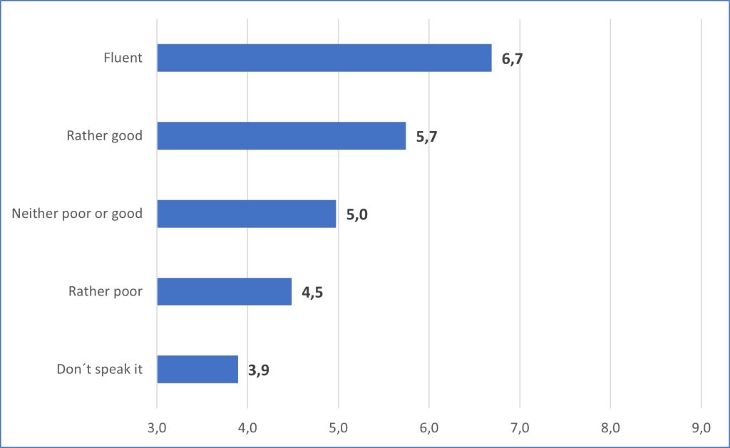 Self-review or estimation of “Proficiency in the Icelandic language” is a background variable of importance. Here too, we see a linear relationship where participation is linked to proficiency in the language. The variation of the scores shows that learning the language is of importance for immigrants to adapt or integrate and that participation is important for learning the language.