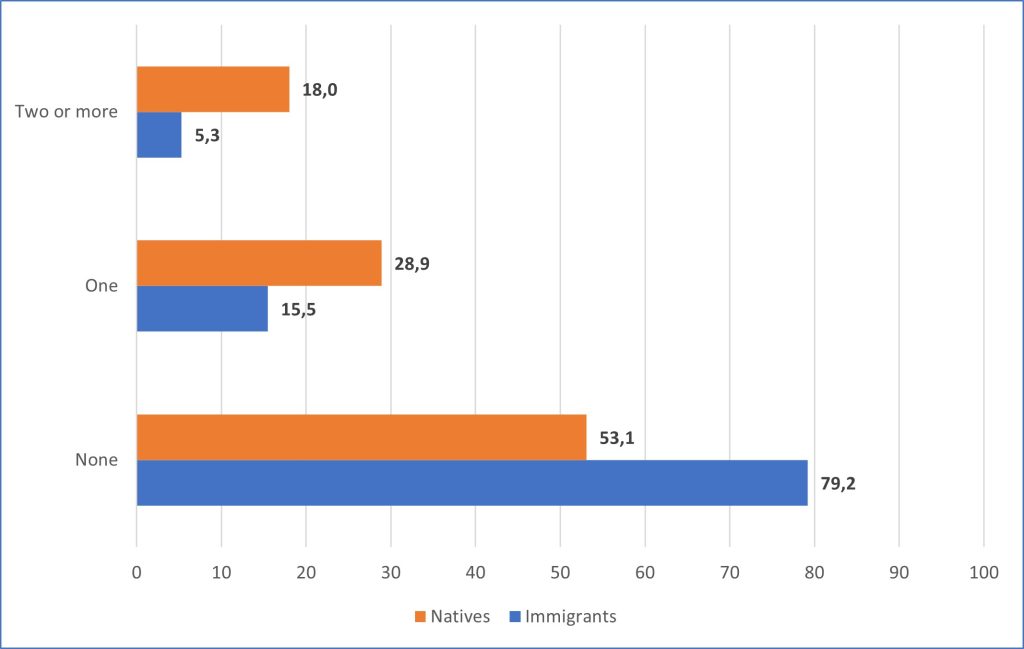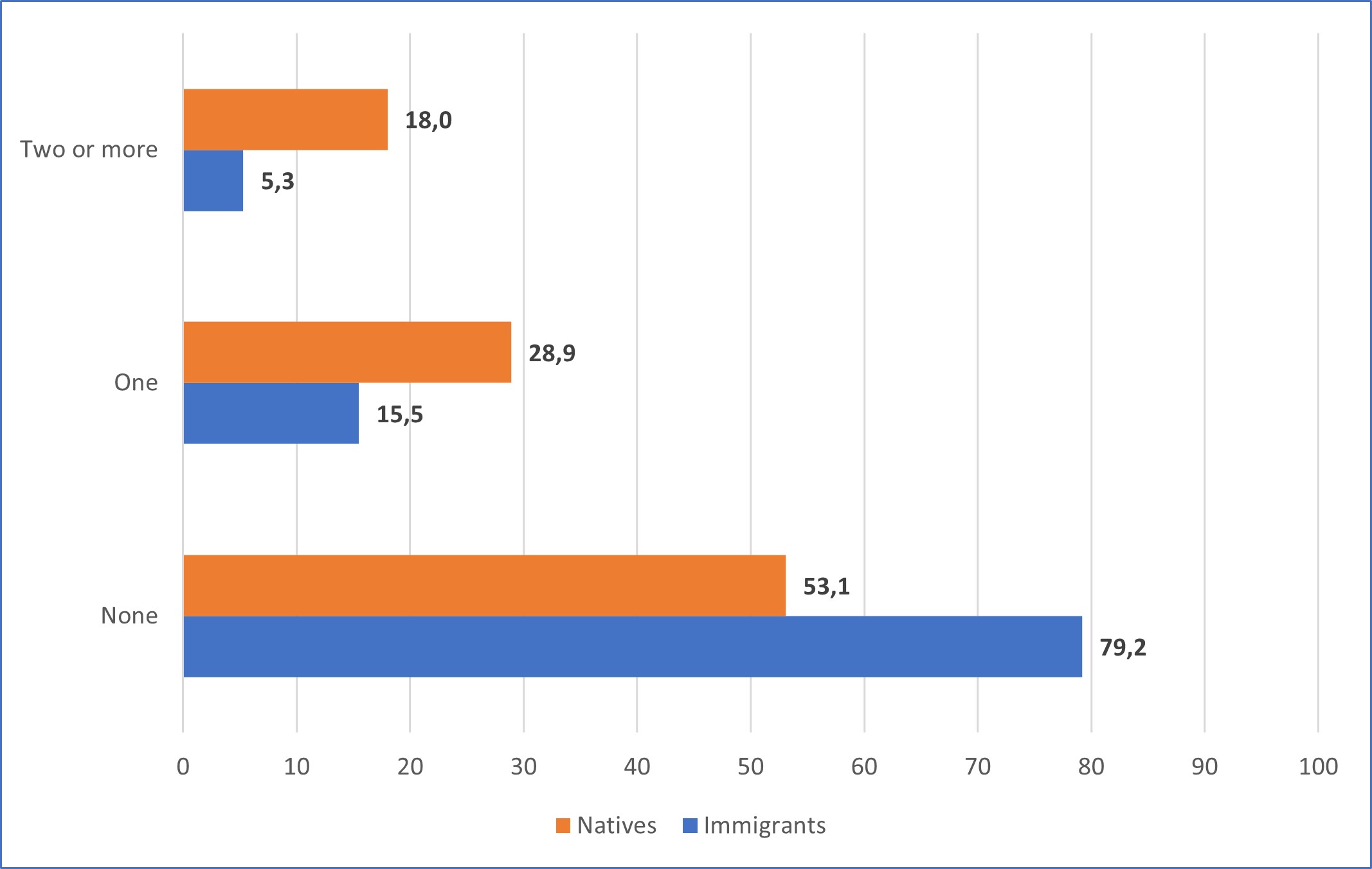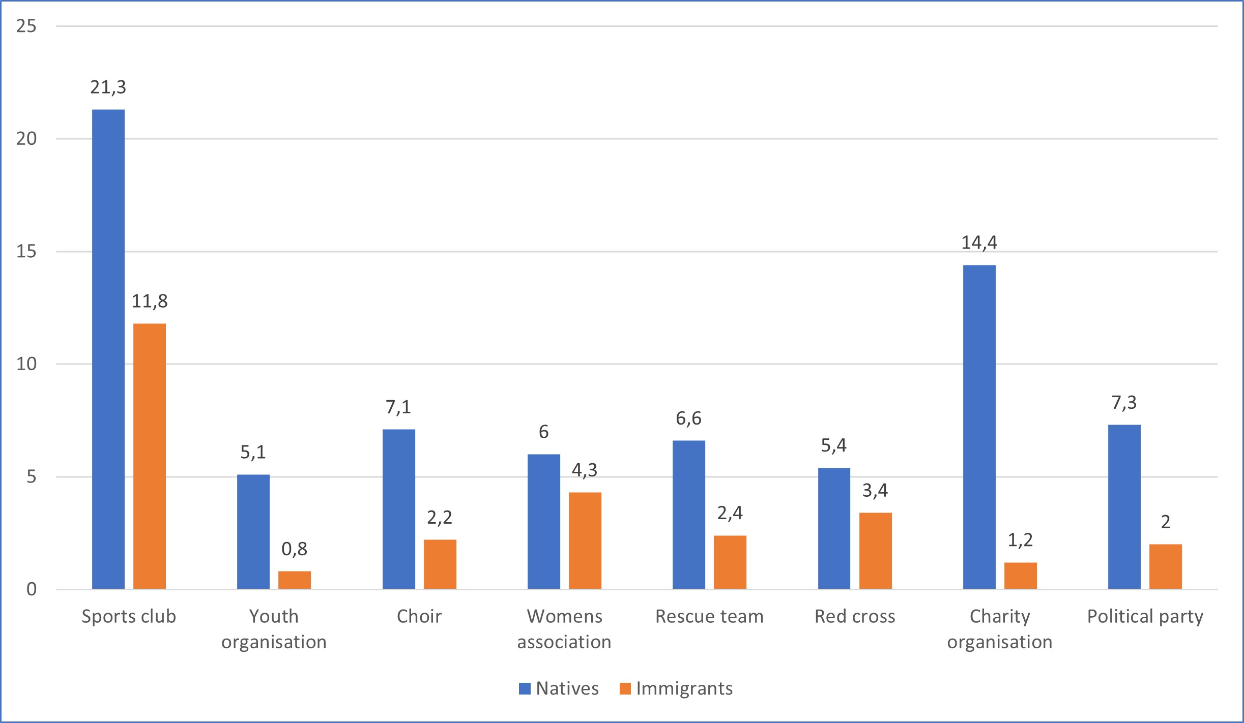Figure 13. Immigrants’ and natives’ membership in organisations (%).
