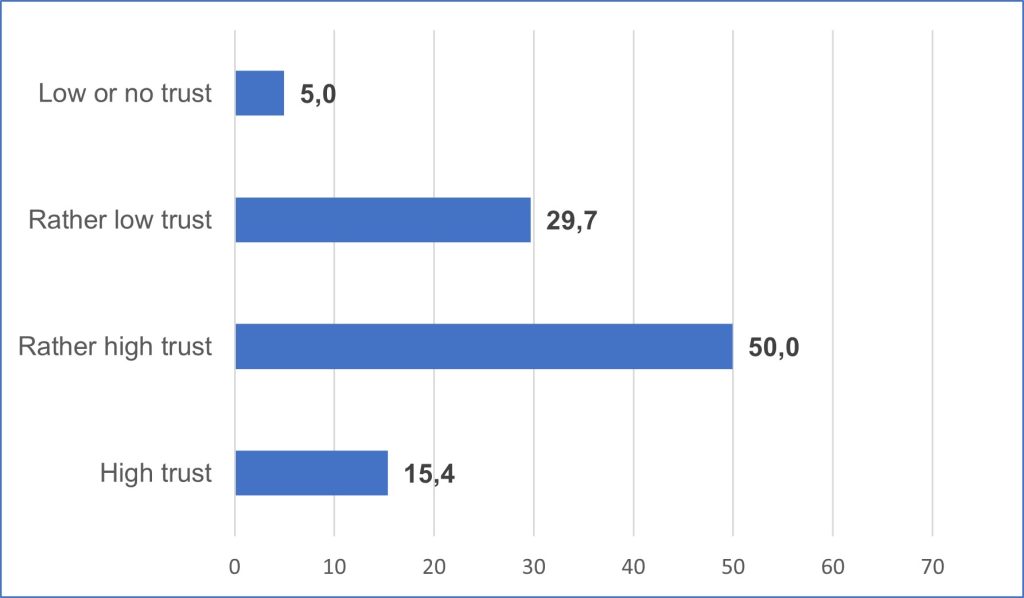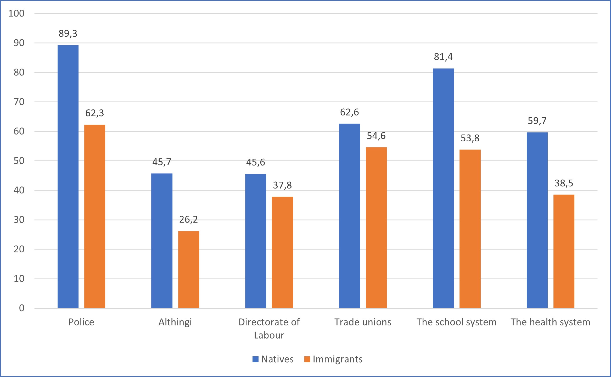 Figure 6. Immigrants´ trust in Icelandic institutions (%).