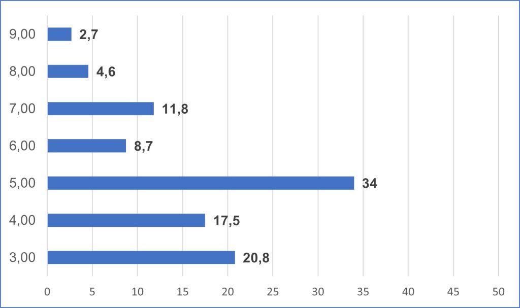 Note: From Figure 4 scores from 3 to 4 are classified „Low“, scores from 5 to 7 as „Some“and scores from 8 to 9 are classified as „High“.