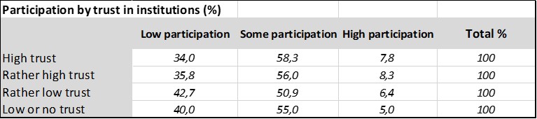Table 1. Immigrants’ participation by trust in institutions (%).